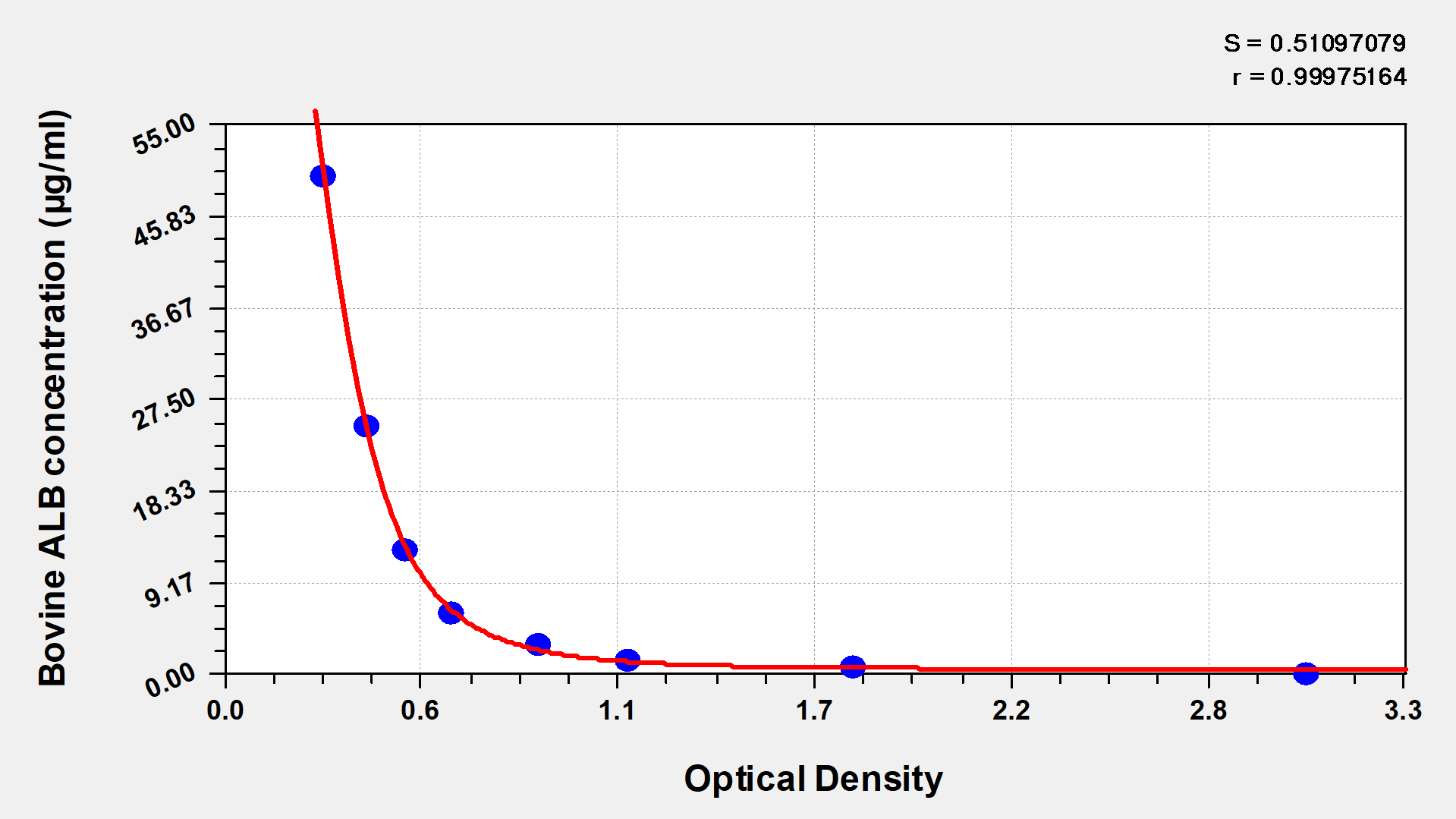 To assess the linearity of the assay, samples were spiked with high concentrations of bovine ALB in various matrices and diluted with the Sample Diluent to produce samples with values within the dynamic range of the assay.