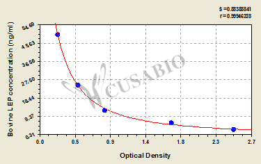 To assess the linearity of the assay, samples were spiked with high concentrations of bovine LEP in various matrices and diluted with the Sample Diluent to produce samples with values within the dynamic range of the assay. Sample Serum(n=4) 1:1 Average % 94 Range % 89-98 1:2 Average % 90 Range % 87-94 1:4 Average % 89 Range % 85-94 1:8 Average % 100 Range % 96-105 -