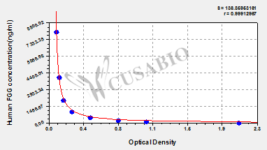 To assess the linearity of the assay, samples were spiked with high concentrations of human FGG in various matrices and diluted with the Sample Diluent to produce samples with values within the dynamic range of the assay. Sample Serum(n=4) 1:200 Average % 99 Range % 95-108 1:400 Average % 94 Range % 91-98 1:800 Average % 92 Range % 88-95 1:1600 Average % 87 Range % 81-93 -