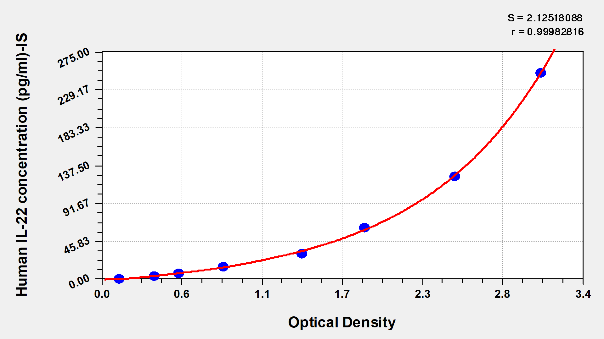 To assess the linearity of the assay, samples were spiked with high concentrations of human IL-22 in various matrices and diluted with the Sample Diluent to produce samples with values within the dynamic range of the assay.