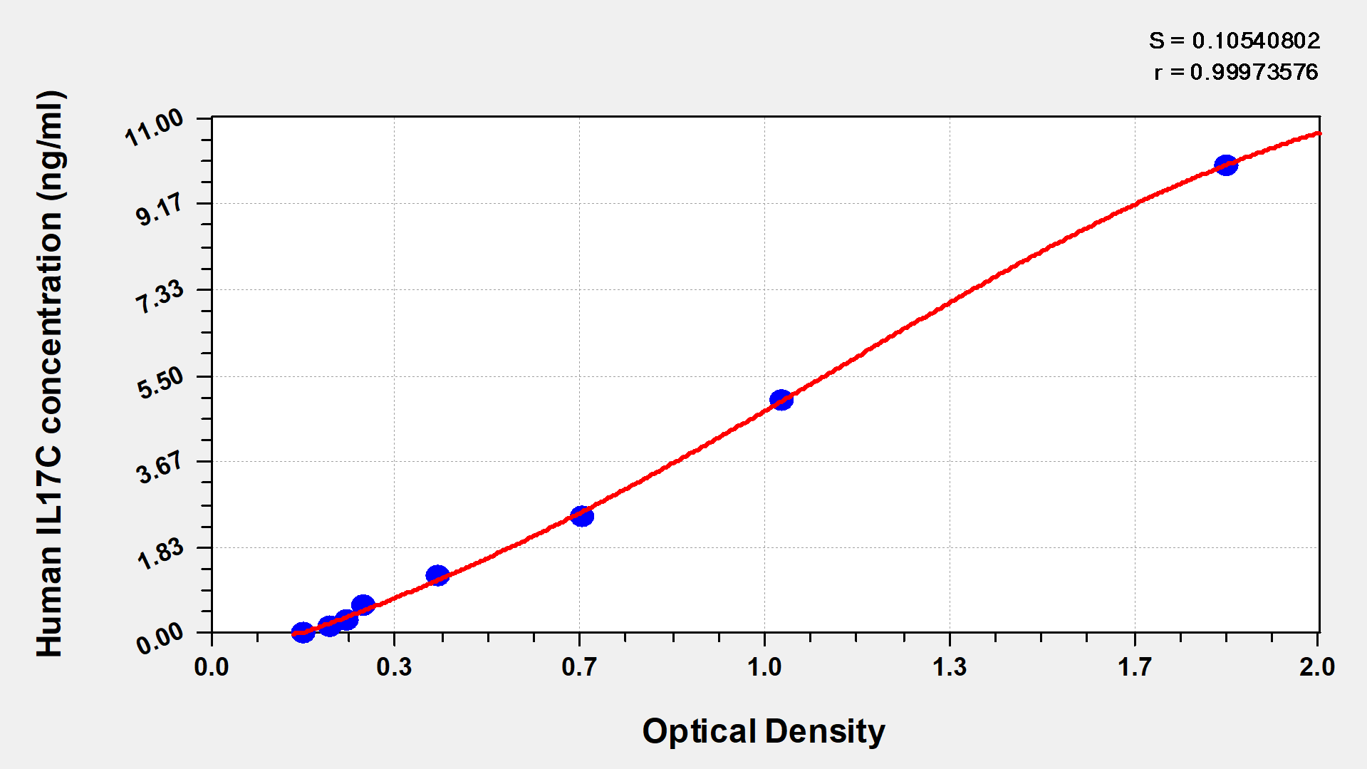 To assess the linearity of the assay, samples were spiked with high concentrations of human IL17C in various matrices and diluted with the Sample Diluent to produce samples with values within the dynamic range of the assay.