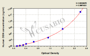 To assess the linearity of the assay, samples were spiked with high concentrations of human OGN in various matrices and diluted with the Sample Diluent to produce samples with values within the dynamic range of the assay. Sample Serum(n=4) 1:5 Average % 96 Range % 91-105 1:10 Average % 95 Range % 92-98 1:20 Average % 87 Range % 80-92 1:40 Average % 99 Range % 96-108 -