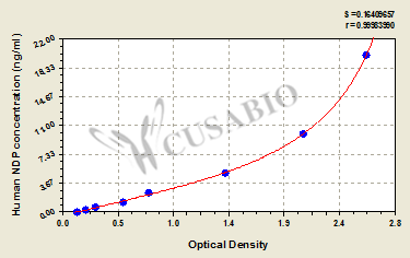 To assess the linearity of the assay, samples were spiked with high concentrations of human NDP in various matrices and diluted with the Sample Diluent to produce samples with values within the dynamic range of the assay. Sample Serum(n=4) 1:1 Average % 102 Range % 96-105 1:2 Average % 99 Range % 92-103 1:4 Average % 90 Range % 82-94 1:8 Average % 99 Range % 92-103 -