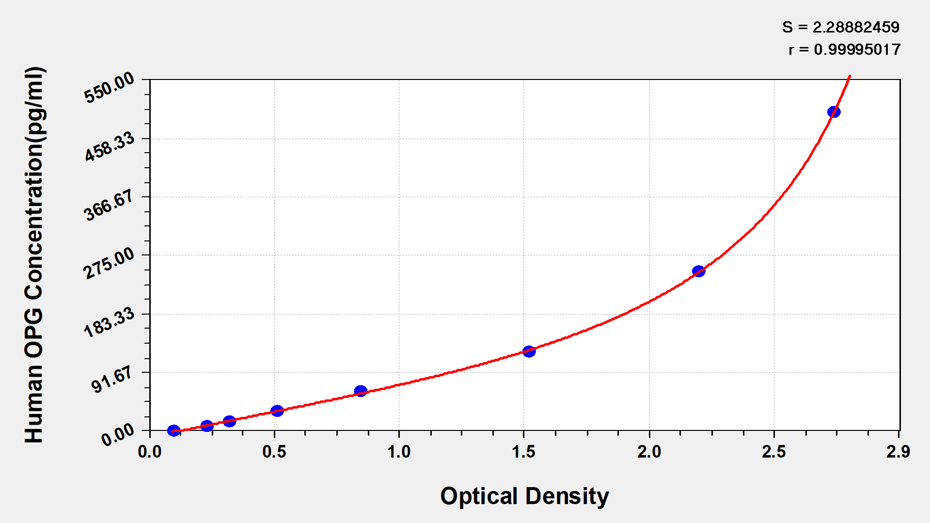 產(chǎn)品描述:人骨保護素(OPG)酶聯(lián)免疫試劑盒(CSB-E04692h)為雙抗夾心法ELISA試劑盒,定量檢測血清、血漿、組織勻漿樣本中的TNFRSF11B含量。TNFRSF11B,即腫瘤壞死因子受體超家族11B,是一種在骨代謝中起調(diào)節(jié)作用的分泌型糖蛋白。其研究機制主要涉及與RANKL結合以抑制破骨細胞生成,參與骨重塑和癌癥的多個生物過程。試劑盒檢測范圍為7.8 pg/mL-500 pg/mL,靈敏度為1.95 pg/mL。適用于科研領域?qū)谴x調(diào)控機制、骨骼相關疾病模型建立、藥物干預效果評估等研究,特別在骨質(zhì)疏松動物模型構建、成骨細胞分化實驗、炎癥性骨破壞機制探討等場景中,可為研究人員提供可靠的定量分析工具。試劑盒包含預包被抗體、檢測抗體及全套實驗緩沖體系,支持直接開展OPG蛋白表達水平的動態(tài)監(jiān)測及多組學關聯(lián)分析。本品僅用于科研,不用于臨床診斷,產(chǎn)品具體參數(shù)及操作步驟詳見產(chǎn)品說明書。
