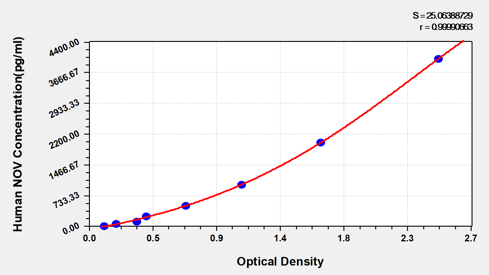 To assess the linearity of the assay, samples were spiked with high concentrations of human NOV in various matrices and diluted with the Sample Diluent to produce samples with values within the dynamic range of the assay.