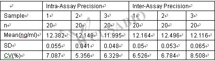Inter-assay Precision (Precision between assays):CV%<10%
