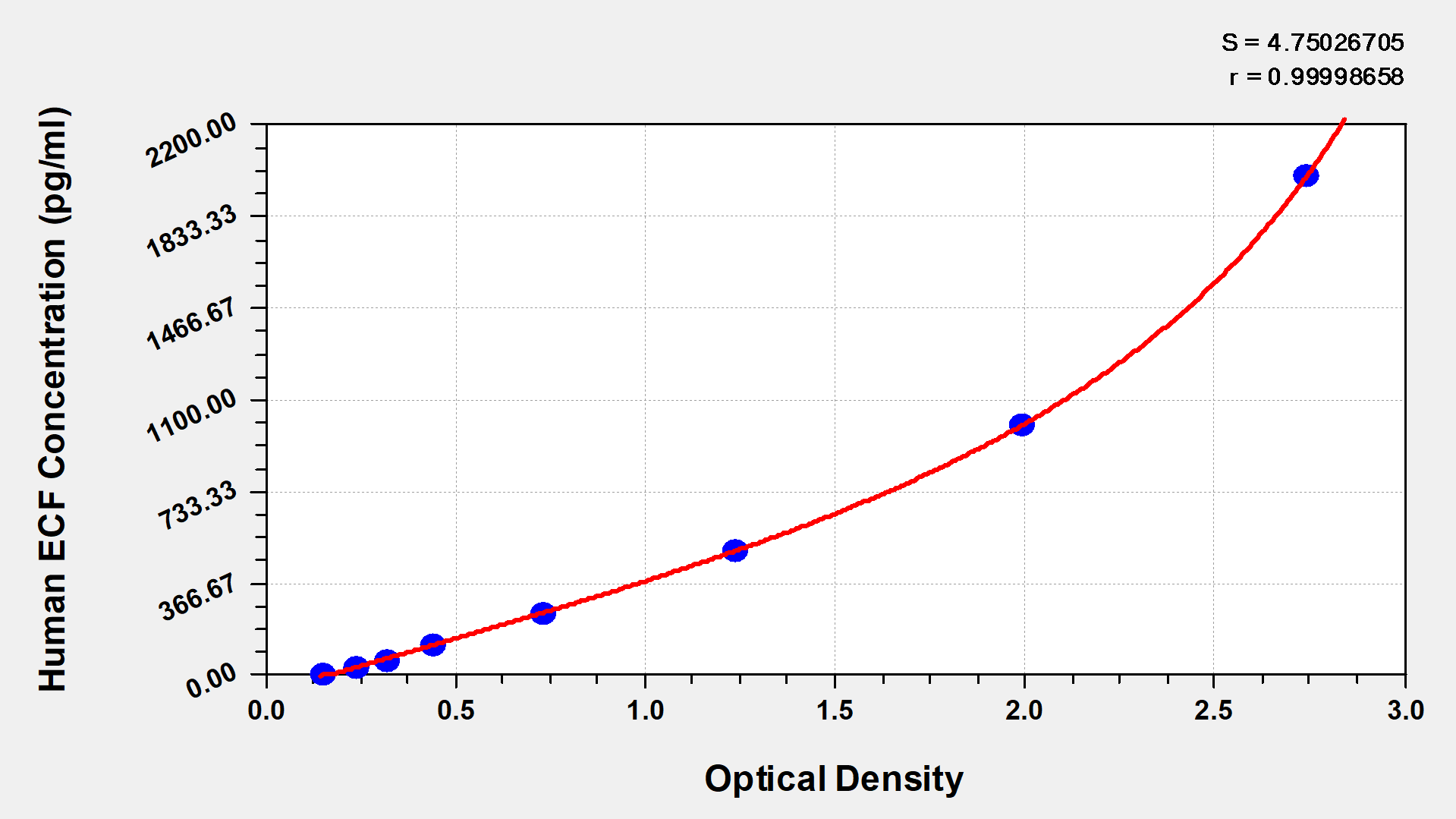 To assess the linearity of the assay, samples were spiked with high concentrations of human ECF in various matrices and diluted with the Sample Diluent to produce samples with values within the dynamic range of the assay.