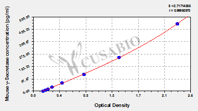 To assess the linearity of the assay, samples were spiked with high concentrations of mouse γ-Secretase in various matrices and diluted with the Sample Diluent to produce samples with values within the dynamic range of the assay. Sample Serum(n=4) 1:1 Average % 96 Range % 90-102 1:2 Average % 102 Range % 97-107 1:4 Average % 89 Range % 87-93 1:8 Average % 94 Range % 90-98 -