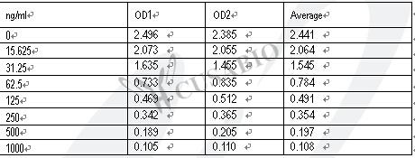 檢測范圍:15.625 ng/mL-1000 ng/mL