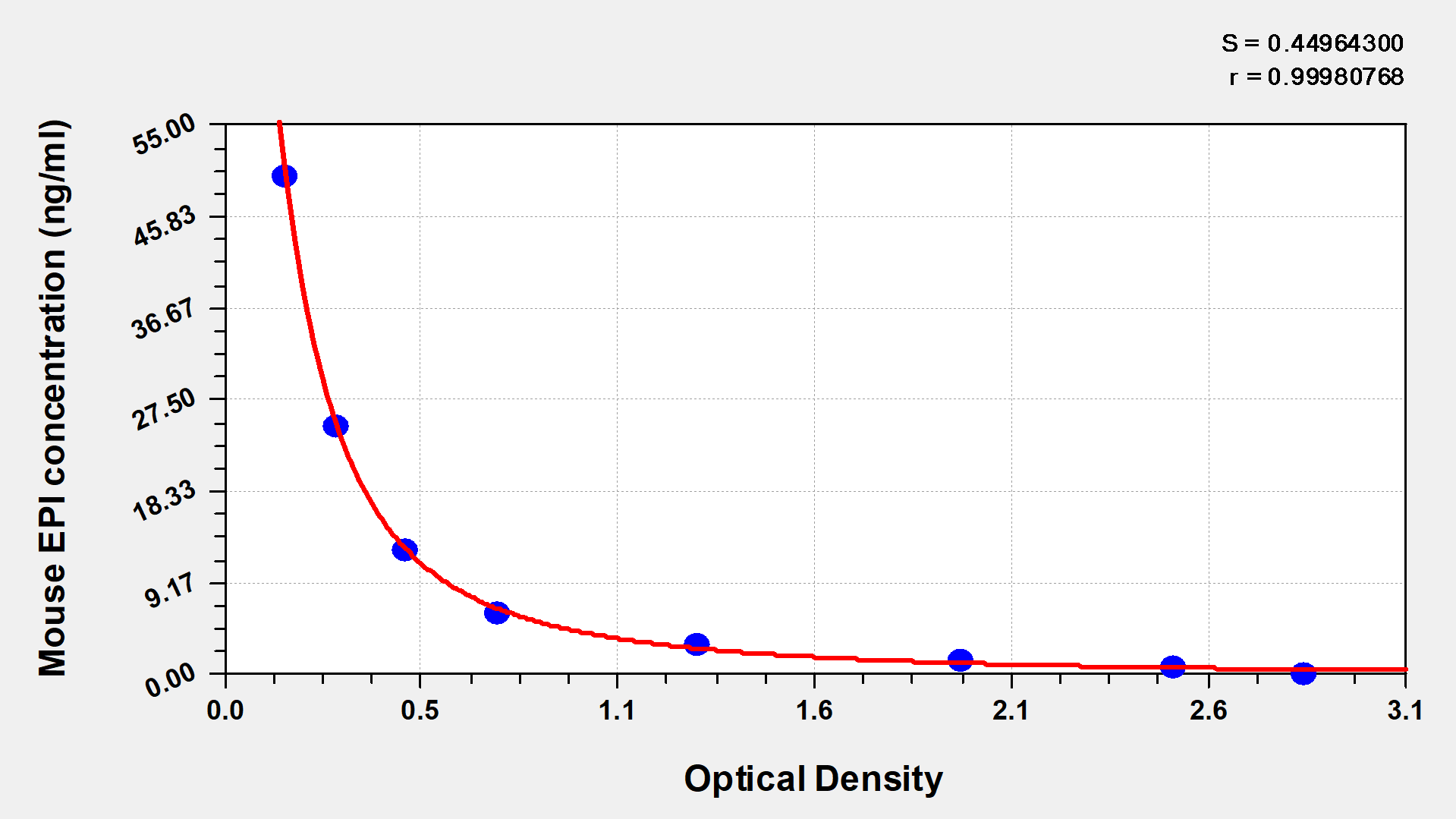To assess the linearity of the assay, samples were spiked with high concentrations of mouse EPI in various matrices and diluted with the Sample Diluent to produce samples with values within the dynamic range of the assay.