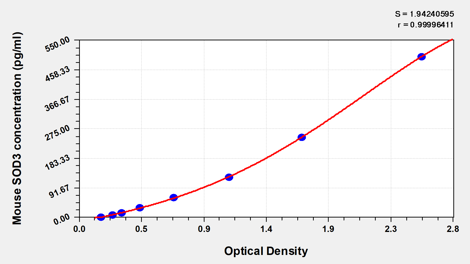 To assess the linearity of the assay, samples were spiked with high concentrations of mouse SOD3 in various matrices and diluted with the Sample Diluent to produce samples with values within the dynamic range of the assay.