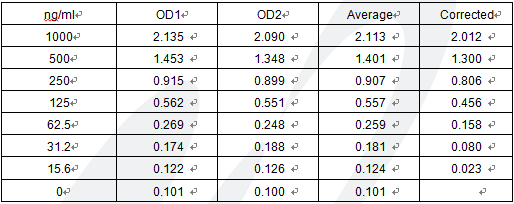 檢測范圍:15.6 ng/mL-1000 ng/mL