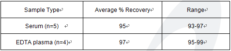 The recovery of mouse IgD spiked to levels throughout the range of the assay in various matrices was evaluated. Samples were diluted prior to assay as directed in the Sample Preparation section.