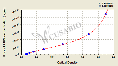 To assess the linearity of the assay, samples were spiked with high concentrations of mouse LAMP2 in various matrices and diluted with the Sample Diluent to produce samples with values within the dynamic range of the assay. Sample Serum(n=4) 1:1 Average % 92 Range % 87-96 1:2 Average % 105 Range % 101-109 1:4 Average % 86 Range % 83-89 1:8 Average % 98 Range % 94-102 -