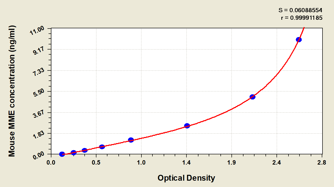 產(chǎn)品描述:小鼠腦啡肽酶(MME)酶聯(lián)免疫試劑盒(CSB-EL014653MO)為雙抗夾心法ELISA試劑盒,定量檢測(cè)血清、血漿,組織勻漿樣本中的MME含量。MME即膜金屬內(nèi)肽酶,在眾多生理過(guò)程中發(fā)揮重要作用。其在細(xì)胞信號(hào)轉(zhuǎn)導(dǎo)等方面有研究?jī)r(jià)值,參與調(diào)節(jié)多種生物活性肽的功能。它作為藥物靶點(diǎn),在高血壓、心血管疾病等治療領(lǐng)域被深入研究,有望為相關(guān)疾病治療帶來(lái)新策略。試劑盒檢測(cè)范圍為0.156 ng/mL-10 ng/mL,靈敏度為0.039 ng/mL。適用于小鼠模型的基礎(chǔ)研究,例如阿爾茨海默病、神經(jīng)性疼痛等疾病機(jī)制探索,或藥理學(xué)實(shí)驗(yàn)中MME表達(dá)水平變化的動(dòng)態(tài)監(jiān)測(cè)。該產(chǎn)品為科研領(lǐng)域提供可靠工具,助力神經(jīng)生物學(xué)、病理生理學(xué)等相關(guān)研究中對(duì)MME功能的深入解析。本品僅用于科研,不用于臨床診斷,產(chǎn)品具體參數(shù)及操作步驟詳見(jiàn)產(chǎn)品說(shuō)明書(shū)。