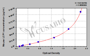 To assess the linearity of the assay, samples were spiked with high concentrations of mouse LCP1 in various matrices and diluted with the Sample Diluent to produce samples with values within the dynamic range of the assay. Sample Serum(n=4) 1:1 Average % 94 Range % 90-98 1:2 Average % 99 Range % 94-103 1:4 Average % 84 Range % 80-88 1:8 Average % 90 Range % 86-94 -