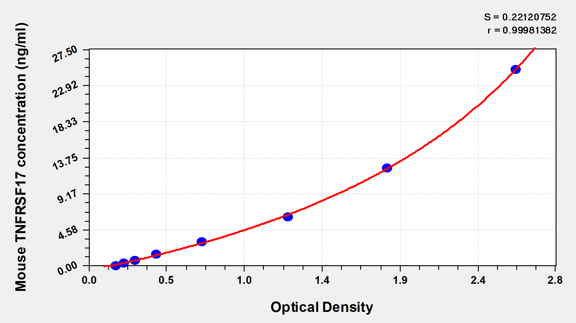 To assess the linearity of the assay, samples were spiked with high concentrations of mouse TNFRSF17 in various matrices and diluted with the Sample Diluent to produce samples with values within the dynamic range of the assay.