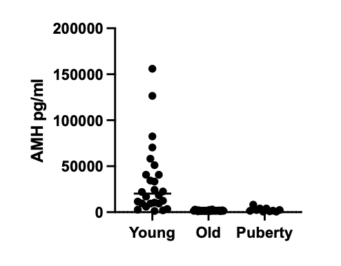 組織特異性:Sertoli cells of fetal testes, and testes just after birth, but absent in adult testes. In female, AMH is expressed after birth in the granulosa cells of the follicle. AMH expression is dependent on the degree of follicular maturation and not on the age o