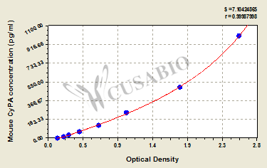 To assess the linearity of the assay, samples were spiked with high concentrations of mouse CyPA in various matrices and diluted with the Sample Diluent to produce samples with values within the dynamic range of the assay. Sample Serum(n=4) 1:1 Average % 90 Range % 86-93 1:2 Average % 93 Range % 89-97 1:4 Average % 95 Range % 91-97 1:8 Average % 100 Range % 96-103 -