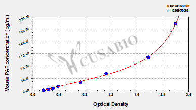 To assess the linearity of the assay, samples were spiked with high concentrations of mouse PAP in various matrices and diluted with the Sample Diluent to produce samples with values within the dynamic range of the assay. Sample Serum(n=4) 1:5 Average % 87 Range % 83-94 1:10 Average % 97 Range % 92-102 1:20 Average % 105 Range % 98-111 1:40 Average % 93 Range % 87-99 -