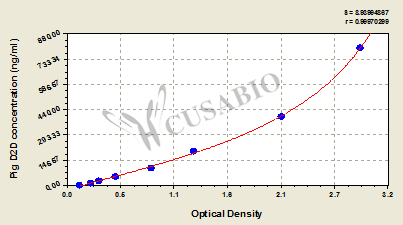 To assess the linearity of the assay, samples were spiked with high concentrations of pig D2D in various matrices and diluted with the Sample Diluent to produce samples with values within the dynamic range of the assay. Sample Serum(n=4) 1:1 Average % 92 Range % 80-99 1:2 Average % 92 Range % 85-100 1:4 Average % 90 Range % 84-99 1:8 Average % 96 Range % 91-102 -