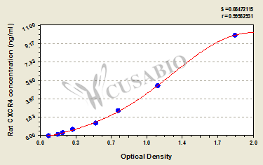 To assess the linearity of the assay, samples were spiked with high concentrations of rat CXCR4 in various matrices and diluted with the Sample Diluent to produce samples with values within the dynamic range of the assay. Sample Serum(n=4) 1:1 Average % 92 Range % 86-95 1:2 Average % 103 Range % 97-106 1:4 Average % 93 Range % 85-96 1:8 Average % 97 Range % 91-100 -