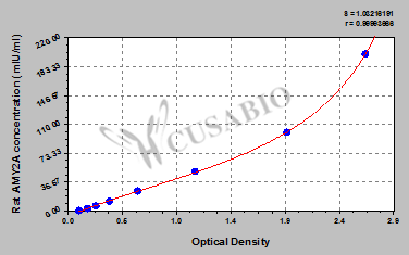To assess the linearity of the assay, samples were spiked with high concentrations of rat AMY2A in various matrices and diluted with the Sample Diluent to produce samples with values within the dynamic range of the assay. Sample Serum(n=4) 1:1 Average % 100 Range % 95-104 1:2 Average % 88 Range % 84-93 1:4 Average % 90 Range % 85-94 1:8 Average % 99 Range % 94-105 -