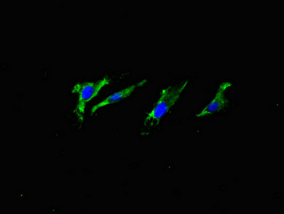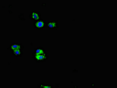 Immunofluorescent analysis of Hela cells using CSB-MA0019501A0m at dilution of 1:100 and Alexa Fluor 488-congugated AffiniPure Goat Anti-Rabbit IgG(H+L)