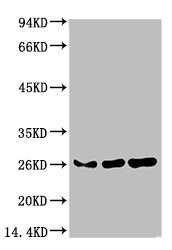 Western blot analysis of 1) Hela Cell Lysate, 2)3T3 Cell Lysate, 3) PC12 Cell Lysate using HP-1γ Mouse mAb diluted at 1:1000.