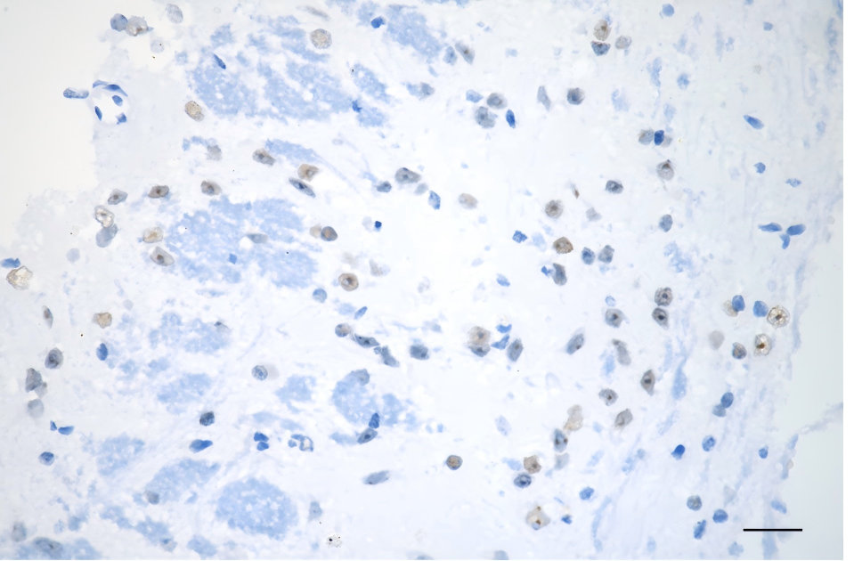 Immunohistochemistry was performed on paraffin-embedded mouse brain using chromobox 3 antibody. Antigen retrieval was done in sodium citrate buffer (pH 6.0). DAB was used for detection, with hematoxylin counterstaining. Images were acquired using a Nikon Ci-L Plus microscope (40× objective). Scale bar: 25 μm.