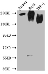 Positive WB detected in: Jurkat whole cell lysate, Raji whole cell lysate, THP-1 whole cell lysate