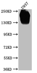 Positive WB detected in: THP-1whole cell lysate at 20μg, 10μg, 5μg, 2.5μg, 1.25μg All lanes: CD45 antibody at 1:2000