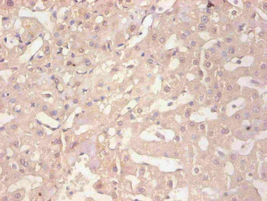Immunohistochemical of paraffin-embedded human liver tissue using CSB-MA114091A0m at dilution of 1:200