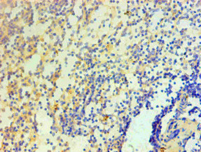 Immunohistochemical of paraffin-embedded Human spleen tissue using CSB-MA8378691A0m at dilution of 1:200.