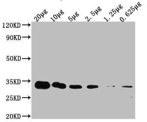 Positive WB detected in: Hela whole cell lysate at 20μg, 10μg, 5μg, 2.5μg, 1.25μg, 0.625μg