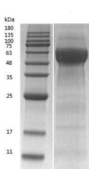 復(fù)溶:We recommend that this vial be briefly centrifuged prior to opening to bring the contents to the bottom. Please reconstitute protein in deionized sterile water to a concentration of 0.1-1.0 mg/mL.We recommend to add 5-50% of glycerol (final concentration) and aliquot for long-term storage at -20°C/-80°C. Our default final concentration of glycerol is 50%. Customers could use it as reference.