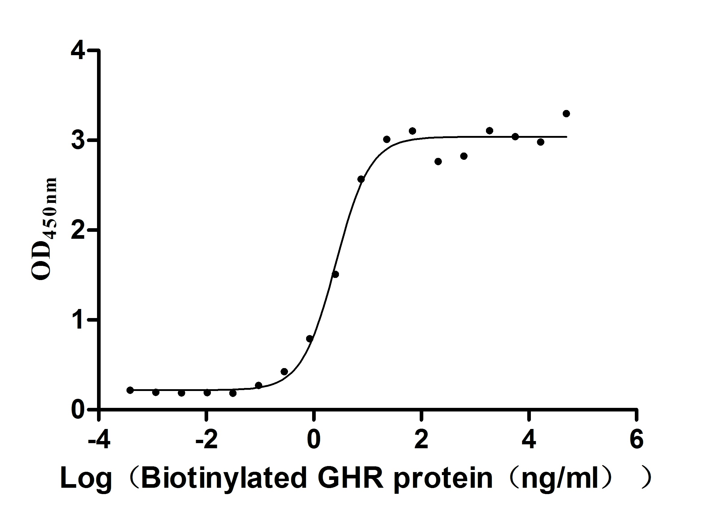 Measured by its binding ability in a functional ELISA. Immobilized GH1 (CSB-MP009407HU) at 1 μg/ml can bind human GHR, the EC50 of human GHR protein is 24.96-33.39 ng/ml. -