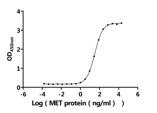 Measured by its binding ability in a functional ELISA.Immobilized Anti-MET recombinant antibody (CSB-RA013714MA2HU). at 2 μg/ml can bind Biotinylated Human MET. The EC50 is 30.49-33.61 ng/mL. Biological Activity Assay -