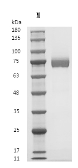 復(fù)溶:We recommend that this vial be briefly centrifuged prior to opening to bring the contents to the bottom. Please reconstitute protein in deionized sterile water to a concentration of 0.1-1.0 mg/mL.We recommend to add 5-50% of glycerol (final concentration) and aliquot for long-term storage at -20°C/-80°C. Our default final concentration of glycerol is 50%. Customers could use it as reference.