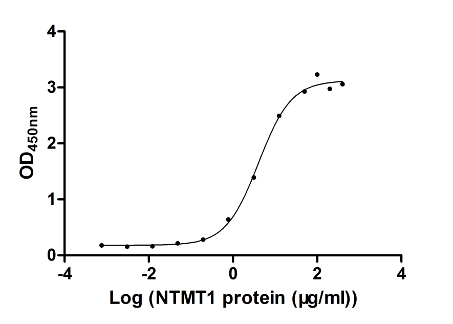 Measured by its binding ability in a functional ELISA. Immobilized CCL5 at 2 μg/ml can bind human NTMT1, the EC50 of human NTMT1 protein is 3.029-5.404 μg/ml. -