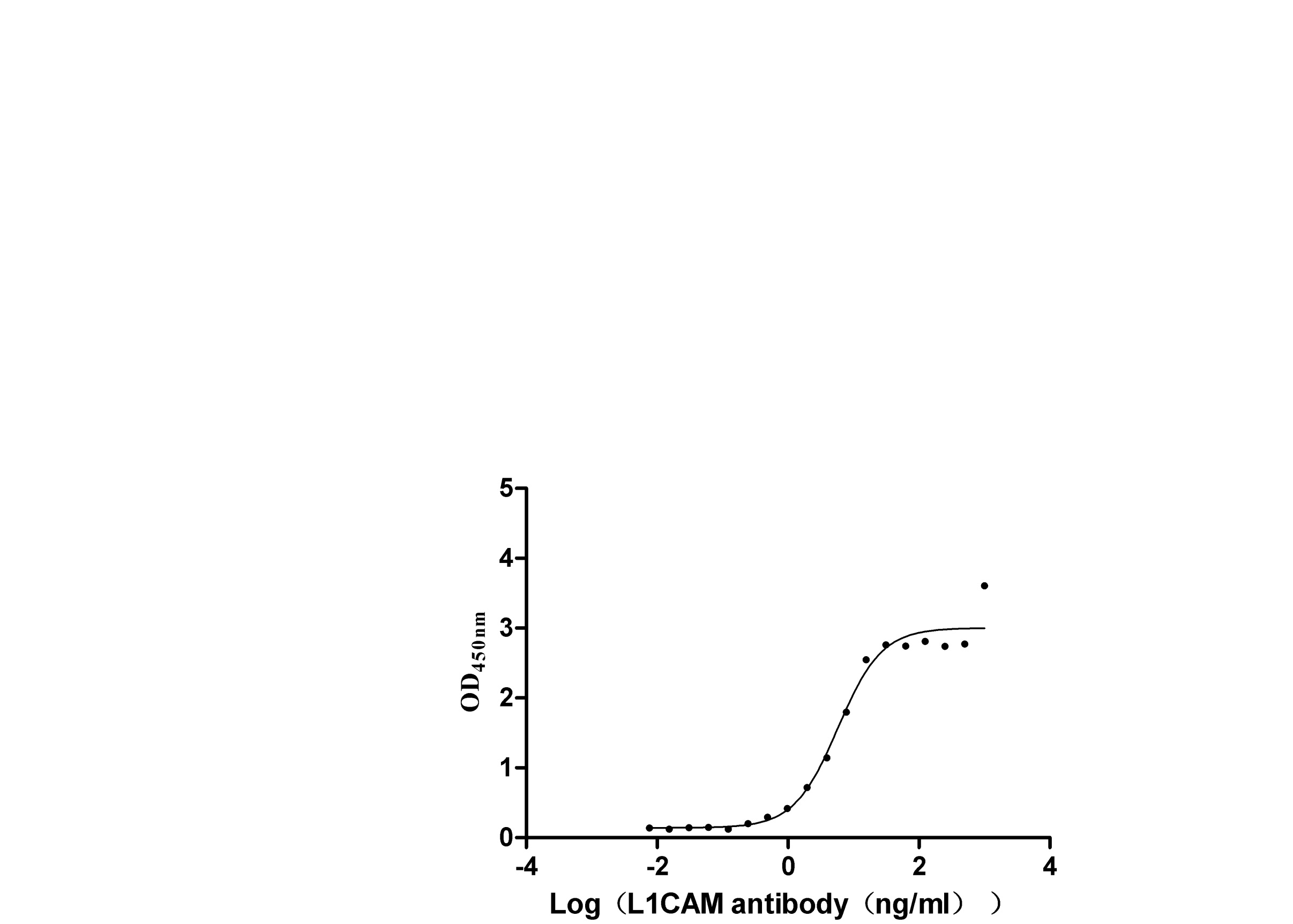 Measured by its binding ability in a functional ELISA. Immobilized L1CAM at 2 μg/ml can bind Anti-L1CAM Rabbit Monoclonal Antibody (CSB-RA595071A0HU), the EC50 is 5.384-9.380 ng/ml. Biological Activity Assay