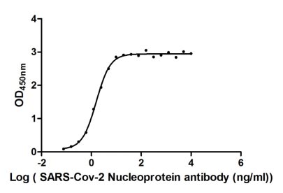 Measured by its binding ability in a functional ELISA. Immobilized SARS-CoV-2-N at 2 μg/ml can bind SARS-CoV-2-N Antibody (CSB-RA33255A1GMY), the EC50 of SARS-CoV-2-N protein is 1.368 -1.804 ng/ml. -