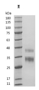復(fù)溶:We recommend that this vial be briefly centrifuged prior to opening to bring the contents to the bottom. Please reconstitute protein in deionized sterile water to a concentration of 0.1-1.0 mg/mL.We recommend to add 5-50% of glycerol (final concentration) and aliquot for long-term storage at -20°C/-80°C. Our default final concentration of glycerol is 50%. Customers could use it as reference.