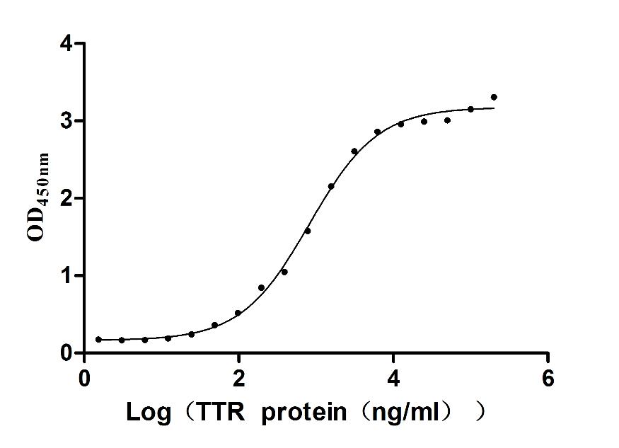 Measured by its binding ability in a functional ELISA. Immobilized RBP4 (CSB-MP019483HU) at 5 μg/ml can bind human TTR, the EC50 of human TTR protein is 284.7-391.7 ng/ml. Biological Activity Assay