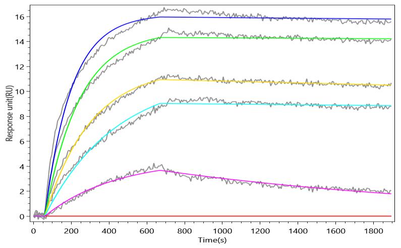 ②Human IL21 (CSB-MP872537HU) captured on Protein A Chip can bind Recombinant Macaca fascicularis IL21R with an affinity constant of 1.31 nM as detected by MetaSPR Assay (WeSPRTM 200). -