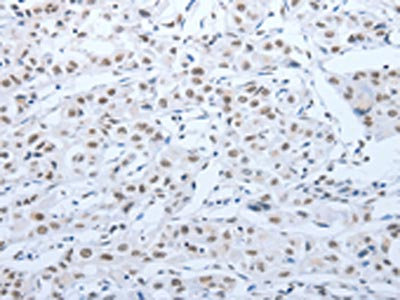 亞細(xì)胞定位:Nucleus. Nucleus speckle. Nucleus, nucleoplasm. Note=Phosphorylation on Ser-1180 by SRPK2 redistributes it from the nuclear speckles to the nucleoplasm.