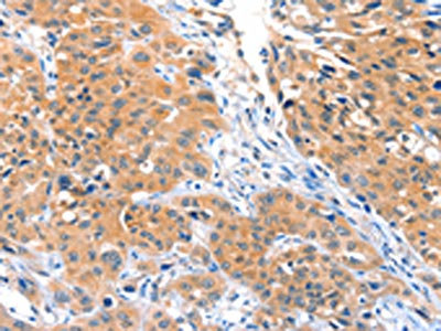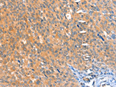 The image on the left is immunohistochemistry of paraffin-embedded Human cervical cancer tissue using CSB-PA908473(ACOX3 Antibody) at dilution 1/25, on the right is treated with fusion protein. (Original magnification: ×200)