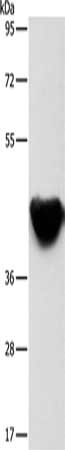 Gel: 8%SDS-PAGE, Lysate: 40 μg, Lane: Mouse heart tissue, Primary antibody: CSB-PA125050(ACTA2 Antibody) at dilution 1/500, Secondary antibody: Goat anti rabbit IgG at 1/8000 dilution, Exposure time: 1 minute