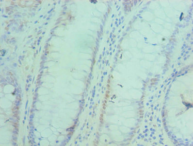 Immunohistochemistry of paraffin-embedded human colon cancer using CSB-PA001236ESR2HU at dilution of 1:100