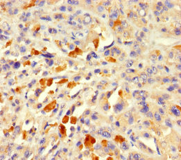 Immunohistochemistry of paraffin-embedded human melanoma using CSB-PA896747LA01HU at dilution of 1:100
